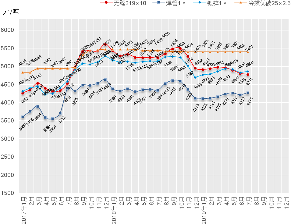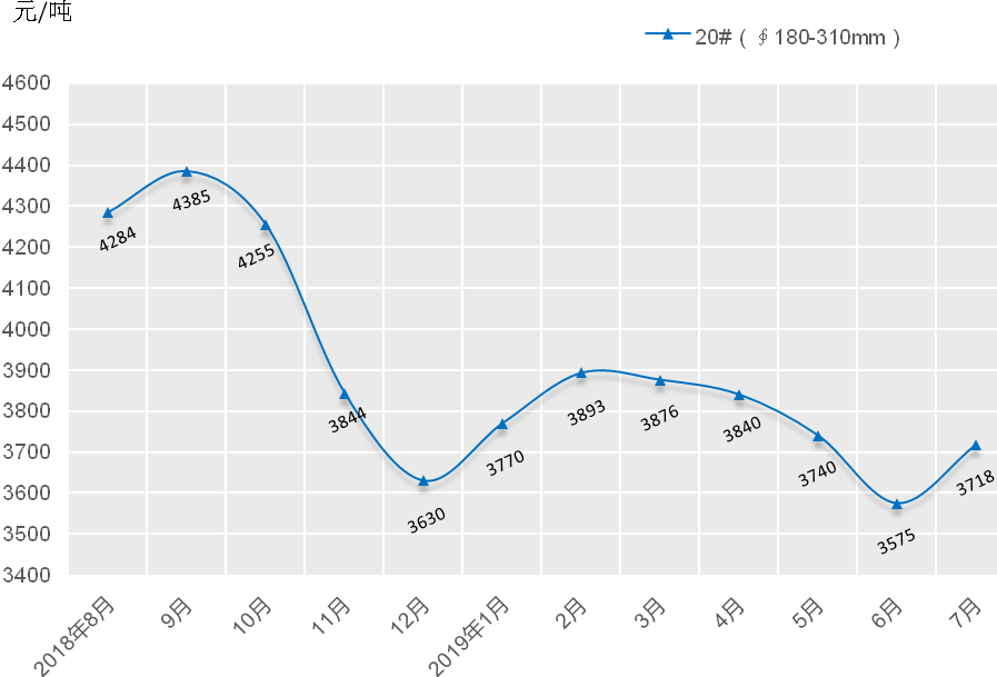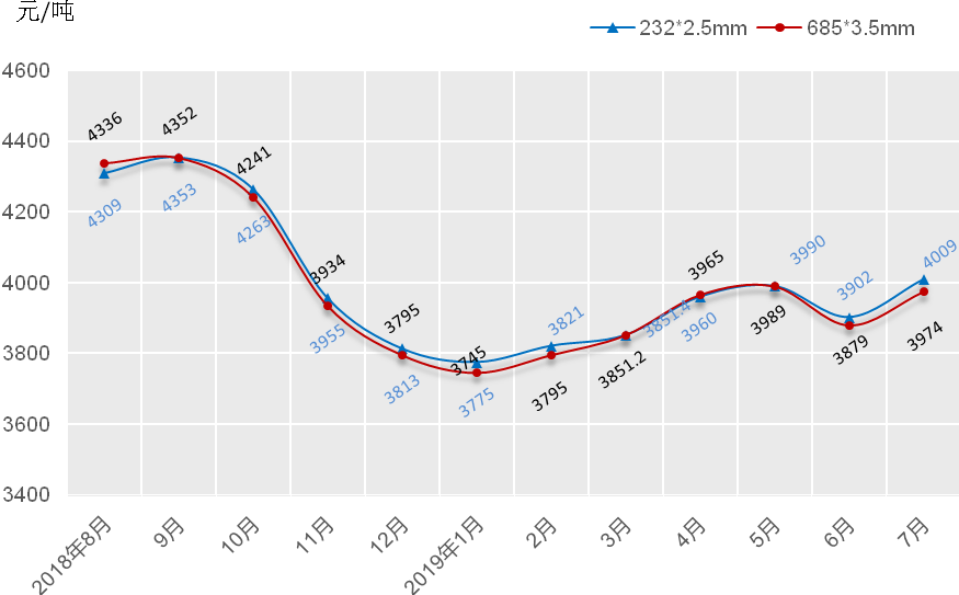 2018年8月-2019年7月無縫鋼管月平均價格指數