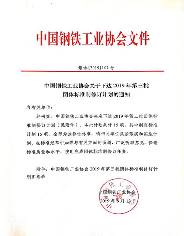 中國鋼鐵工業協會2019年第三批團體標準制修訂計劃匯總表