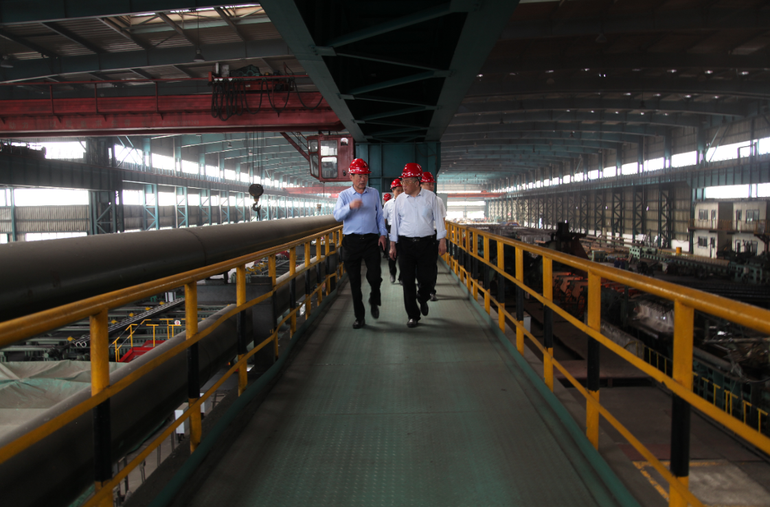 宋存志一行先是聽取了匯通集團發展歷程、生產創新、能源管控、環保措施等方面的匯報,隨后實地深入φ273生產線,認真觀摩了我公司無縫鋼管產品“從圓鋼到鋼管”的生產過程,對集團的自動化生產技術表示肯定和贊揚,對車間規范有序的工作環境表示認可,同時對車間一線工作人員的辛苦付出表示敬佩!