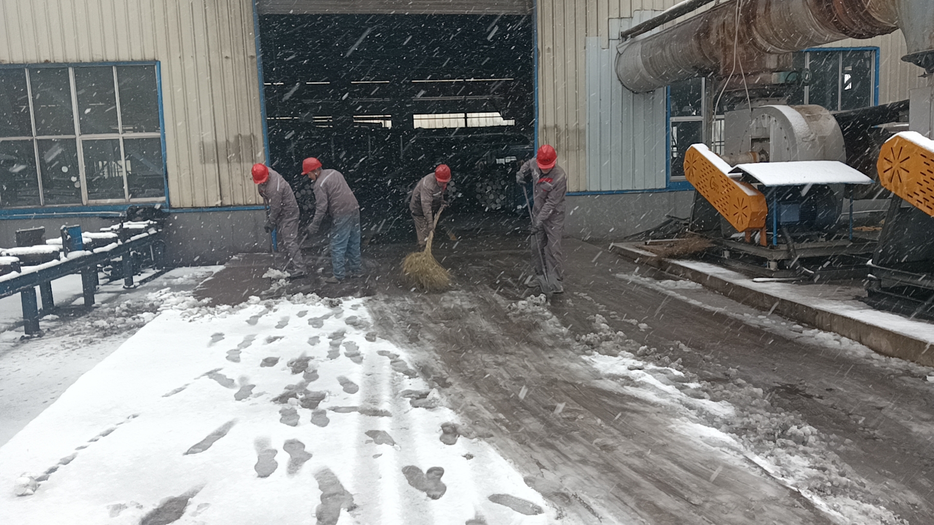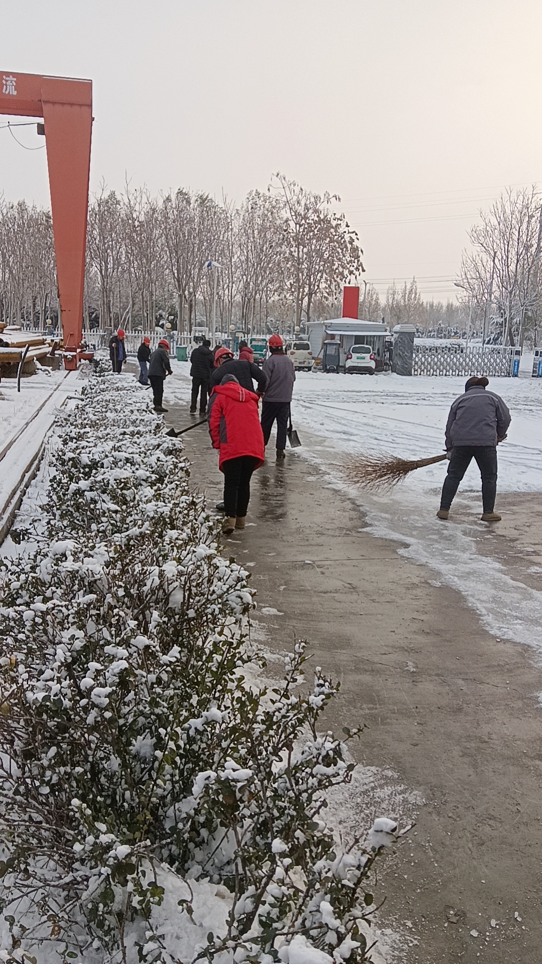 浴“雪”奮戰(zhàn),不畏嚴(yán)寒!各部門、各分廠快速響應(yīng),積極組織,人員迅速到位。在集團(tuán)董事長(zhǎng)賀懷芝的帶領(lǐng)下,全體干部職工組成多個(gè)掃雪小組,頂著嚴(yán)寒,揮舞著鐵鍬對(duì)辦公大樓周圍廣場(chǎng)、主干道以及園區(qū)外主干道的冰雪進(jìn)行了清掃。各分廠負(fù)責(zé)各廠周邊區(qū)域,利用換班時(shí)間進(jìn)行清掃。大家齊心協(xié)力,配合默契,呼出的白霧、揮動(dòng)的掃把、忙碌的身影,在皚皚白雪的映襯下,構(gòu)成一道道靚麗的風(fēng)景!熱火朝天的干勁兒在嚴(yán)寒冬日里散發(fā)著溫暖與熱情!冰雪雖厚,擋不住眾志成城;天寒地凍,敵不過(guò)勠力同心!經(jīng)過(guò)一個(gè)多小時(shí)的奮戰(zhàn),終于將積雪全部鏟除,為員工通行、貨物進(jìn)出開(kāi)辟了一條洋溢著溫情的通暢之路。